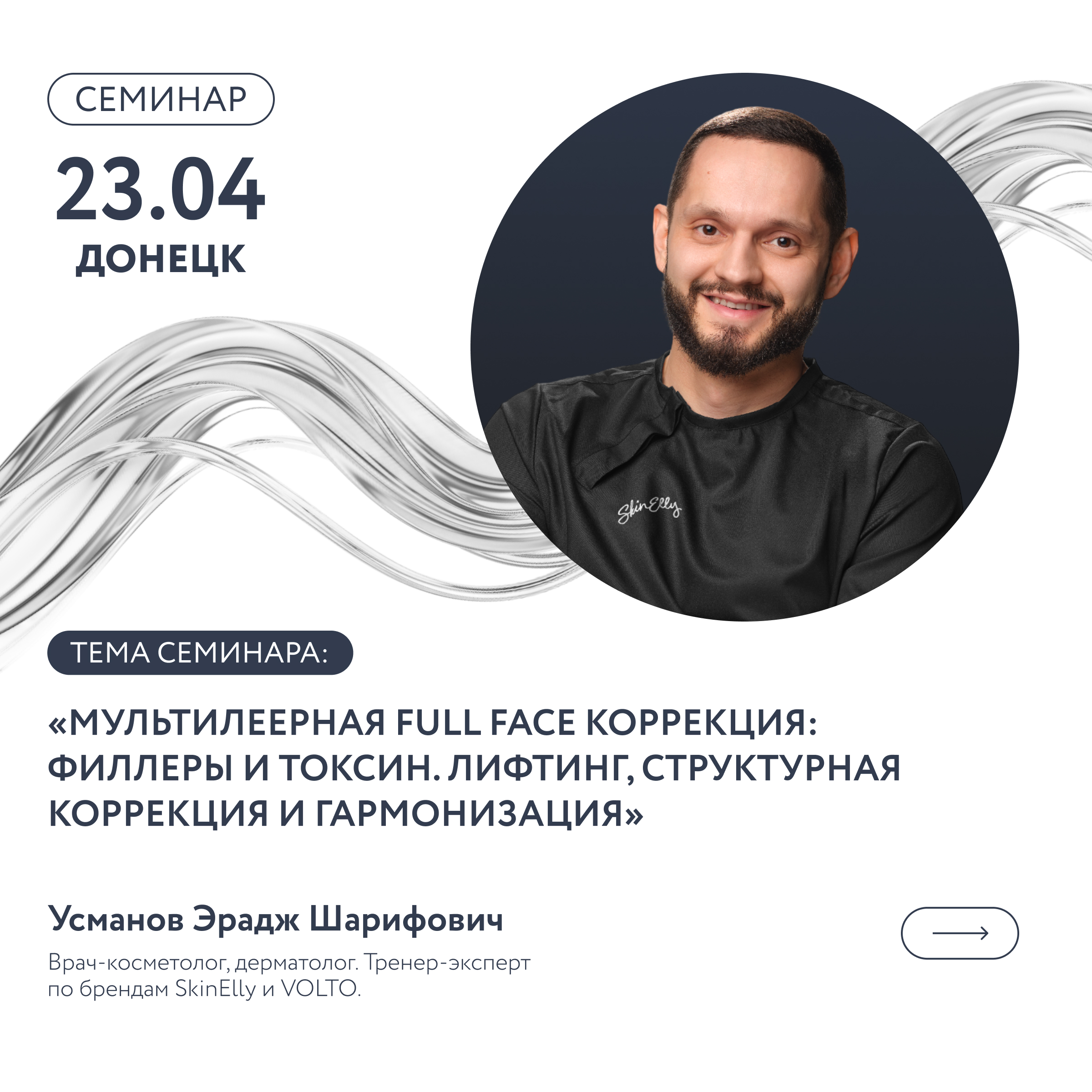 Приглашаем на семинар SkinElly «Мультилеерная full face коррекция: филлеры и токсин. Лифтинг, структурная коррекция и гармонизация» 23 апреля в г. Донецк, ДНР.